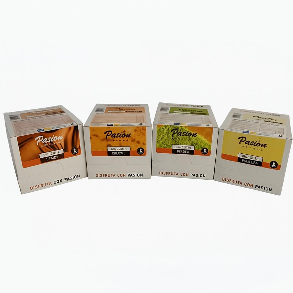Pack de 4 estuches de un sabor diferente cada uno.
